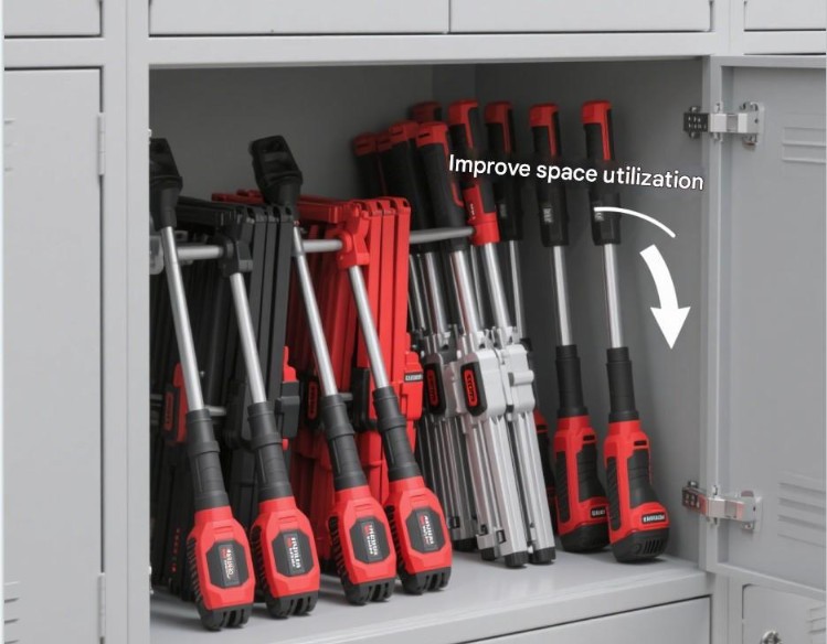 Velegnet til forskellige opbevaringsmiljøer: Uanset om det er en garage, værktøjsrum eller opbevaringsområde på arbejdspladsen, kan udstyret med sammenfoldelig akseldesign let tilpasse sig, hvilket gør det praktisk for brugerne at opbevare og styre i henhold til faktiske behov.