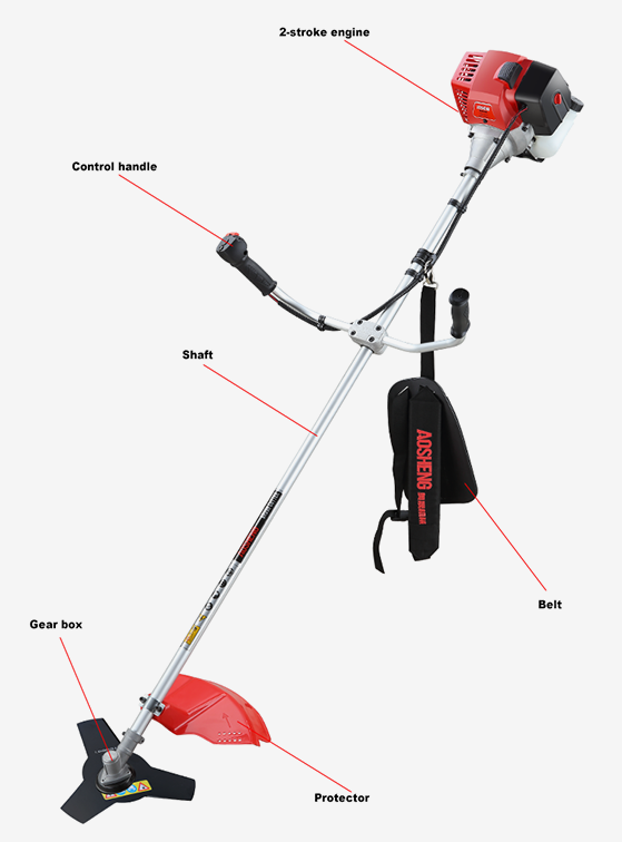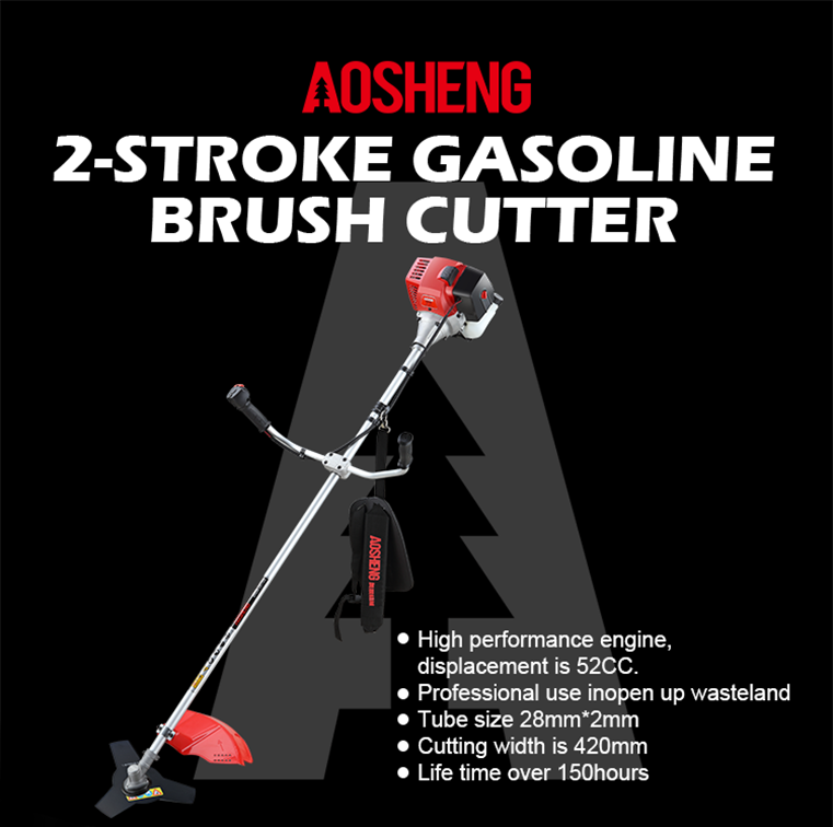 Højtydende motor, slagvolumen er 33CC. Professionel brug åbner ødemark Rørstørrelse 26mm*1,5mm, styrke fleksibelt skaft. Klippebredden er 420 mm Levetid over 150 timer