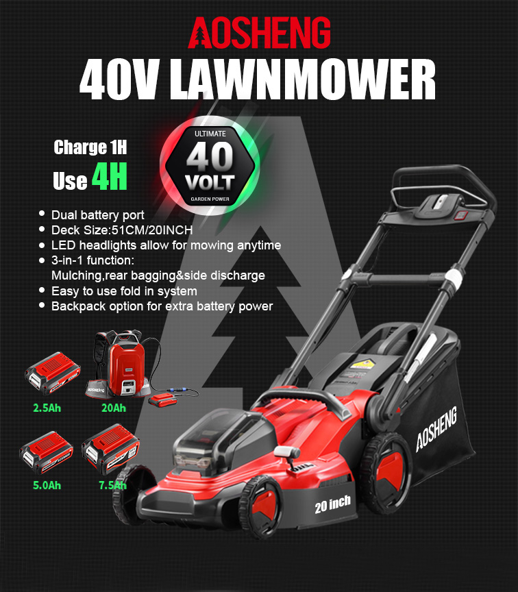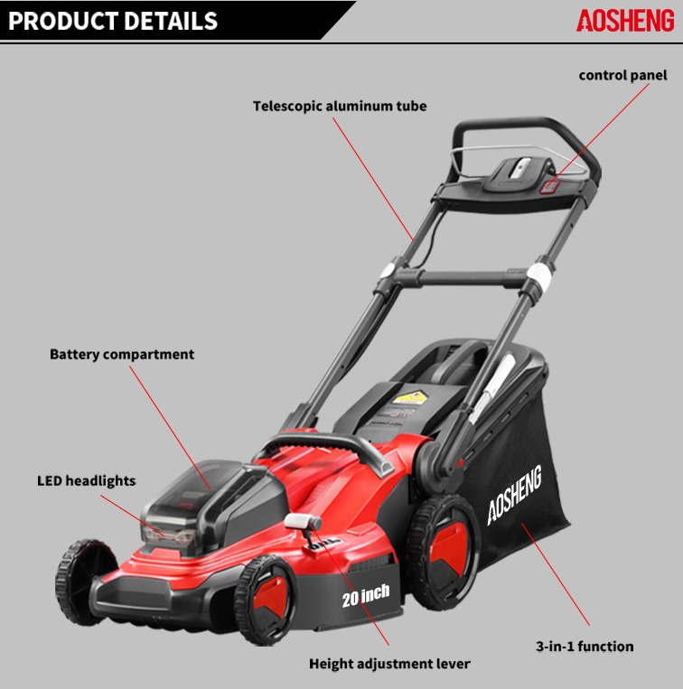 Hjem / Produkter / Lithium Battery Garden Tools / Plæneklipper / A40GC20B01 40V 20 tommer lithiumbatteri trådløs plæneklipper Mower