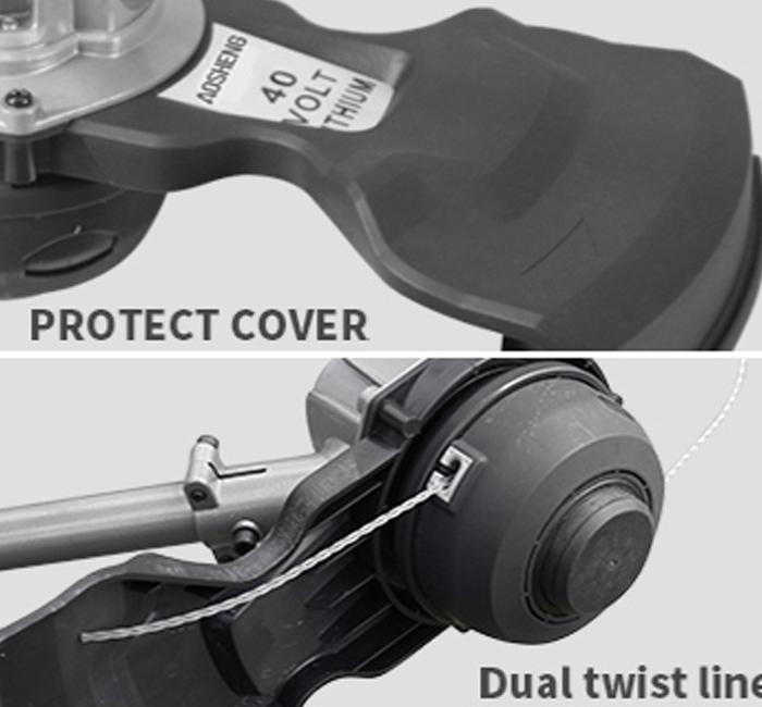| Hastighed uden belastning | Highspeed 6000 o / min Lav hastighed 5000 o / min | Skæring af linjetype | 0,09 '(2,3 mm) Nylon Twist Line |