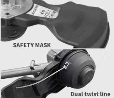 Hjem / Produkter / Lithium Battery Garden Tools / Strengtrimmer / A40DCZ350B01 40V Lithium Batteri Knorløs streng Trimmer Foldbar skaft